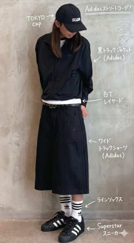 ① adidas黒ストリートコーデの要点