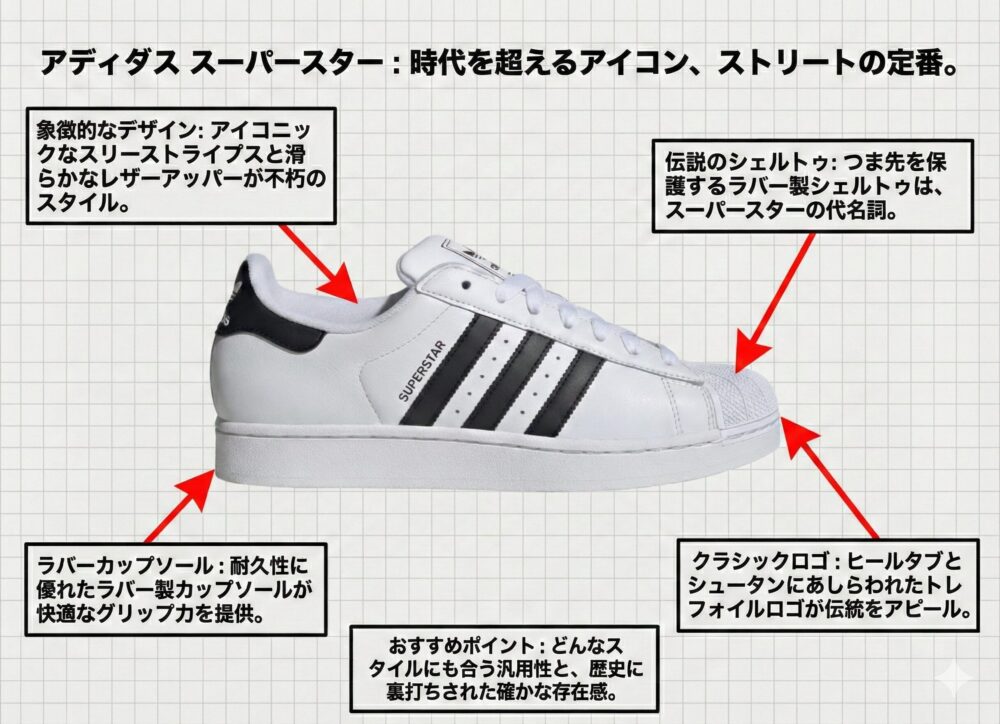 スニーカー界のレジェンド、アディダスの「スーパースター(SUPERSTAR)」。