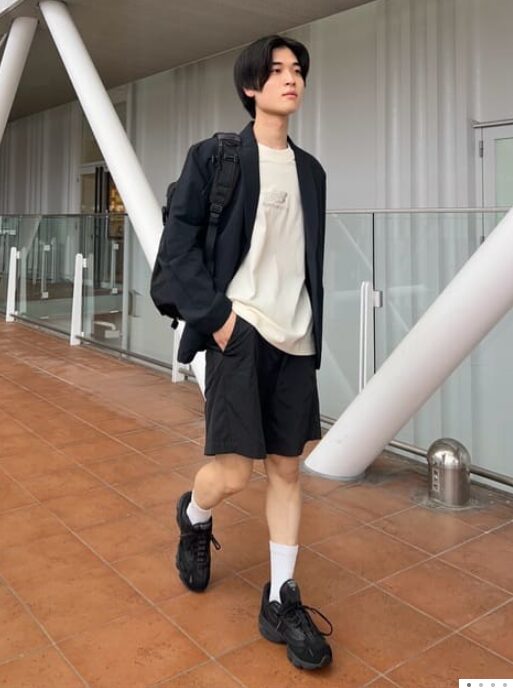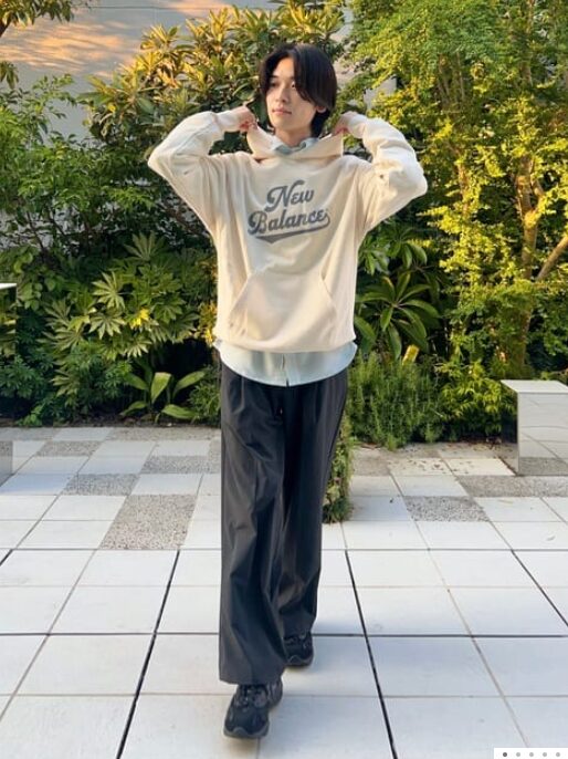 きれいめなパンツの足元にあえてハイテクなM1000を持ってくることで、「決めすぎない抜け感」が生まれます。これがシティボーイ風のおしゃれテクニックです。